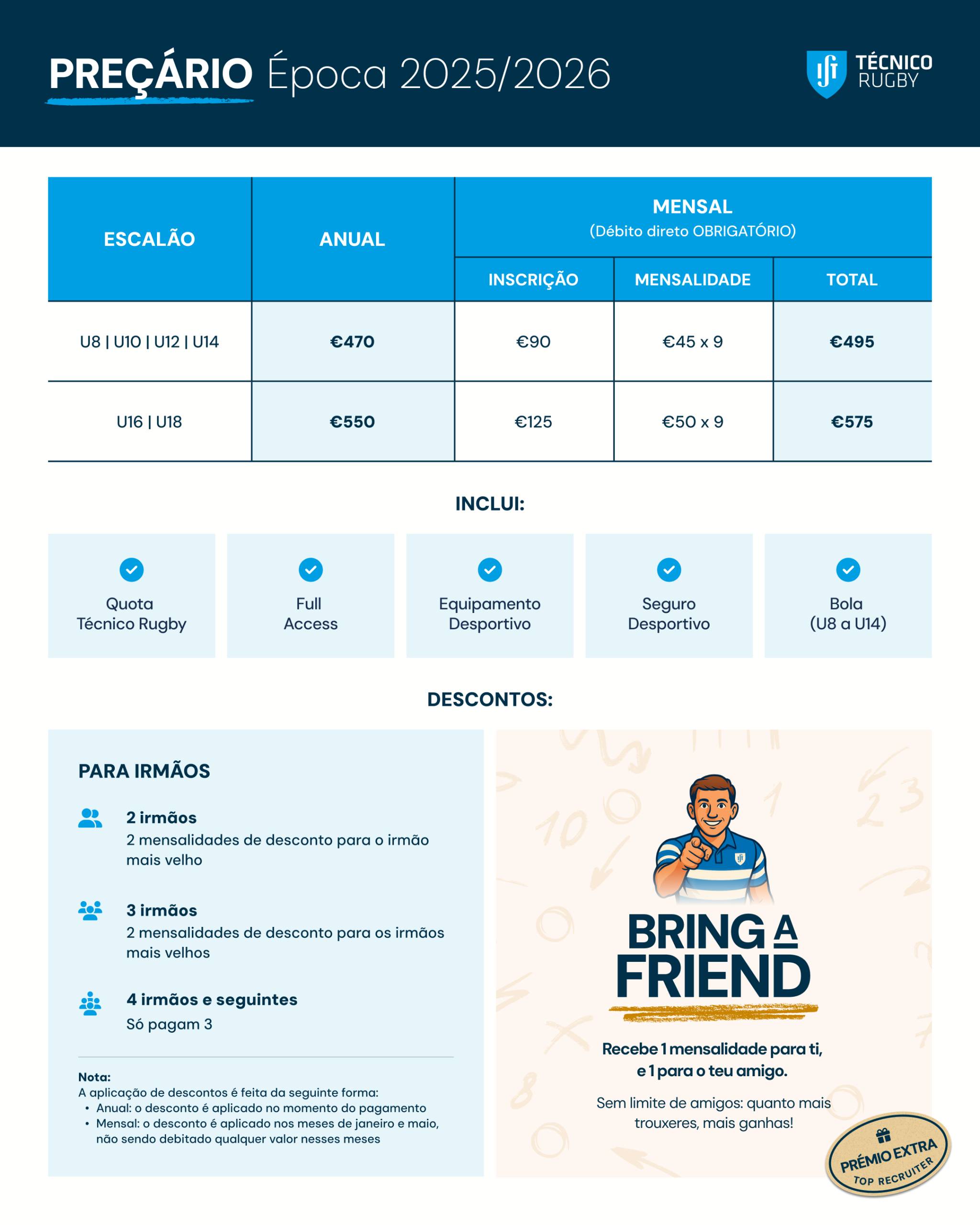 Consulta a tabela de preços aqui: Tabela de preços 2025/26
